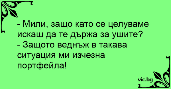 - Мили, защо като се целуваме искаш да те държа за ушите?