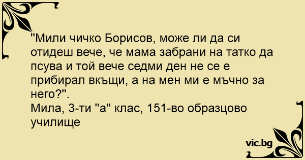 ''Мили чичко Борисов, може ли да си отидеш вече, че мама забрани на татко да псува и той вече седми ден не се е прибирал вкъщи, а на мен ми е мъчно за него?''.