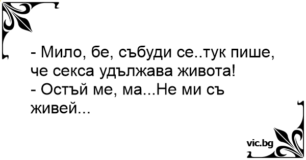 - Мило, бе, събуди се..тук пише, че cekca удължава живота!