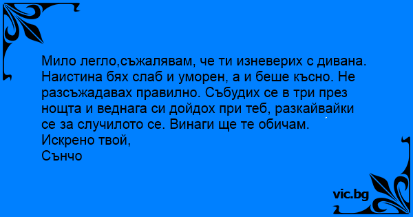 Мило легло,съжалявам, че ти изневерих с дивана.