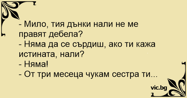 – Мило, тези дънки правят ли ме дебела?