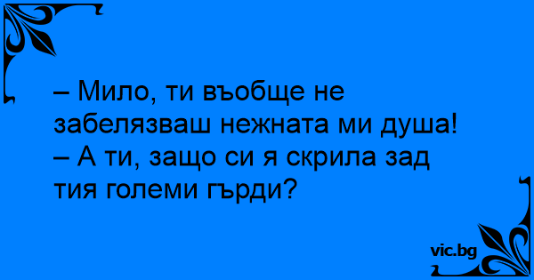 – Мило, ти въобще не забелязваш нежната ми душа!