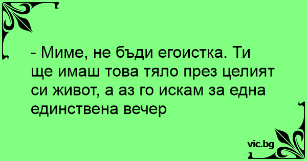 - Миме, не бъди егоистка. Ти ще имаш това тяло през целият си живот, а аз го искам за една единствена вечер