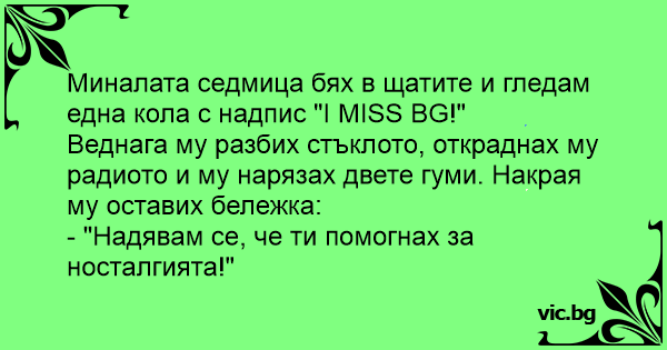 Миналата седмица бях в щатите и гледам една кола с надпис "I MISS BG!"