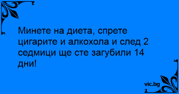 Минете на диета, спрете цигарите и алкохола и след 2 седмици ще сте загубили 14 дни!