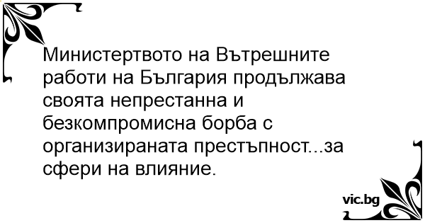 Министертвото на Вътрешните работи на България продължава своята непрестанна и безкомпромисна борба с организираната престъпност...за сфери на влияние.
