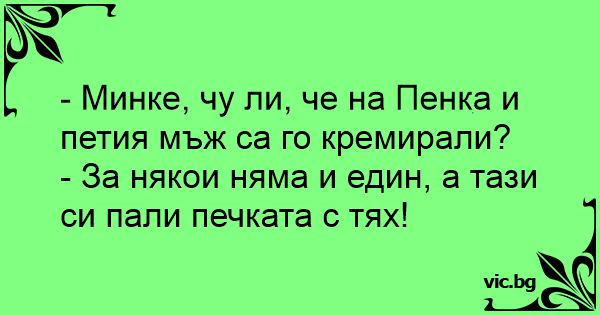 - Минке, чу ли, че на Пенка и петия мъж са го кремирали?