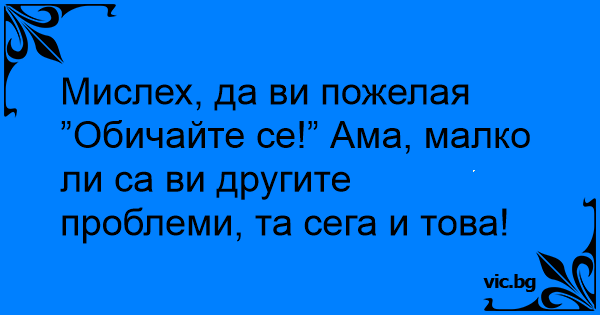Мислех, да ви пожелая ”Обичайте се!” Ама, малко ли са ви другите проблеми, та сега и това!