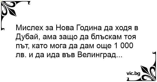 Мислех за Нова Година да ходя в Дубай, ама защо да блъскам тоя път, като мога да дам още 1 000 лв. и да ида във Велинград...<br />