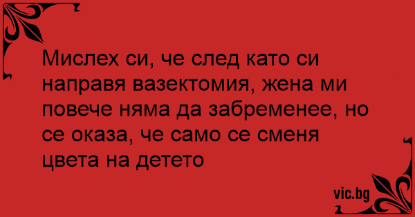 Мислех си, че след като си направя вазектомия, жена ми повече няма да забременее, но се оказа, че само се сменя цвета на детето