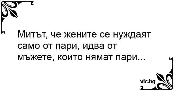 Митът, че жените се нуждаят само от пари, идва от мъжете, които нямат пари...