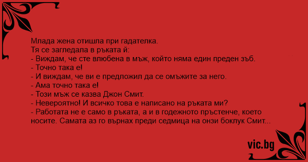 - Виждам, че сте влюбена в мъж, който няма един преден зъб.