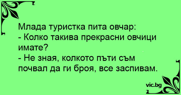 • Вицове от Facebook от нашата страница https://www.facebook.com/www.vic.bg