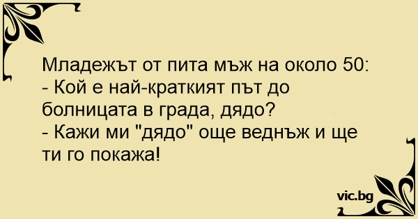 - Кой е най-краткият път до болницата в града, дядо?