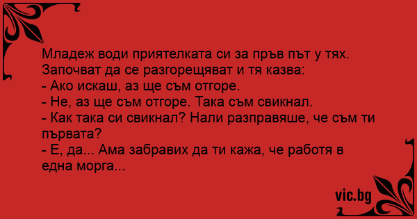 - Е, да... Ама забравих да ти кажа, че работя в една морга...