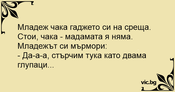 Стои, чака - мадамата я няма. Младежът си мърмори: