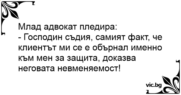 - Господин съдия, самият факт, че клиентът ми се е обърнал именно към мен за защита, доказва неговата невменяемост!