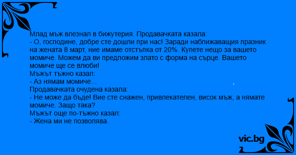 Млад мъж влезнал в бижутерия. Продавачката казала: