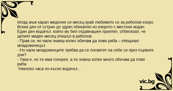 - Прав си, но нали знаеш колко обичам да ловя риба – отвърнал младоженецът.