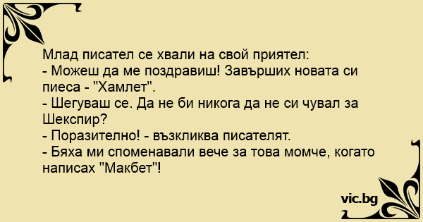 Млад писател се хвали на...