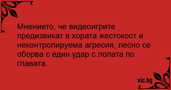 Мнението, че видеоигрите предизвикат в хората жестокост и неконтролируема агресия, лесно се оборва с един удар с лопата по главата.