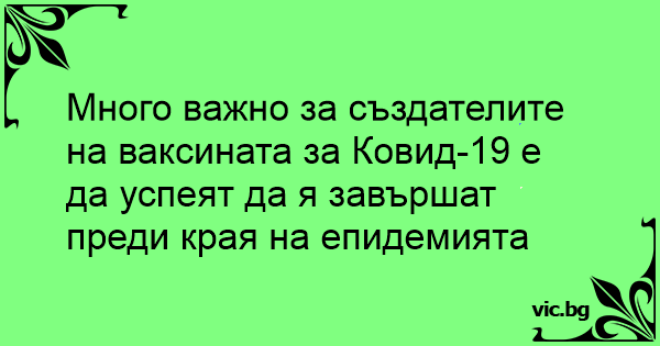 Много важно за създателите на ваксината за Ковид-19 е да успеят да я завършат преди края на епидемията