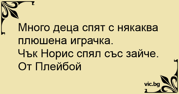 Molti, da piccoli, dormono con un animaletto di pelouche nel letto. Chuck Norris, da piccolo, dormiva con una coniglietta. Di Playboy.