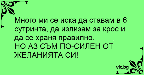 Много ми се иска да ставам в 6 сутринта, да излизам за крос и да се храня правилно.