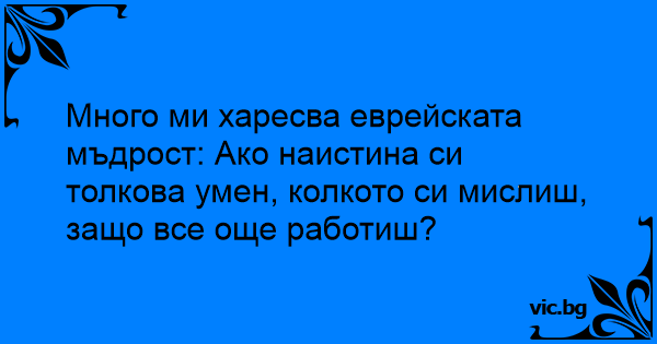 Много ми харесва еврейската мъдрост: Ако наистина си толкова умен, колкото си мислиш, защо все още работиш?