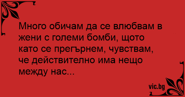 Много обичам да се влюбвам в жени с големи бомби, щото като се прегърнем, чувствам, че действително има нещо между нас...