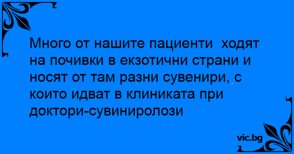 Много от нашите пациенти ходят на почивки в екзотични страни и носят от там разни сувенири, с които идват в клиниката при доктори-сувиниролози