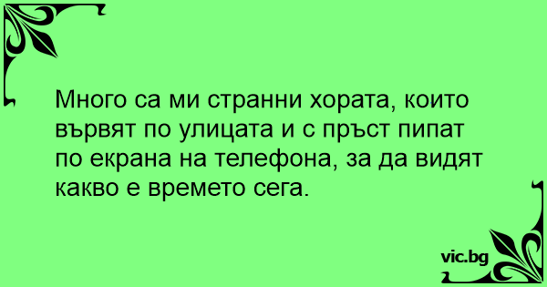 Много са ми странни хората, които вървят по улицата и с пръст пипат по екрана на телефона, за да видят какво е времето сега.