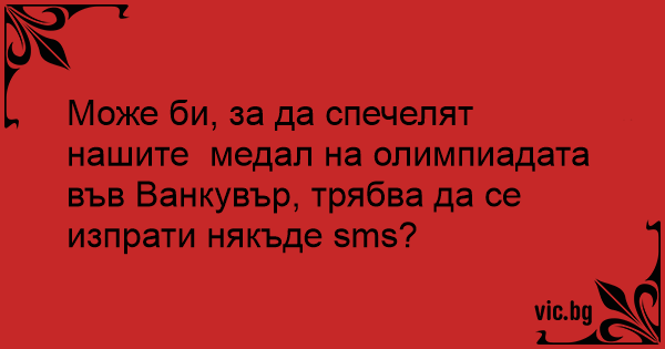 Може би, за да спечелят нашите медал на олимпиадата във Ванкувър, трябва да се изпрати някъде sms?