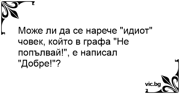 Може ли да се нарече "идиot" човек, който в графа "Не попълвай!", е написал "Добре!"?
