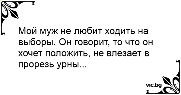 Мой муж не любит ходить на выборы. Он говорит, то что он хочет положить, не влезает в прорезь урны...