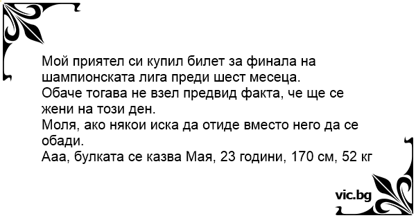 • Вицове от Facebook от нашата страница https://www.facebook.com/www.vic.bg
