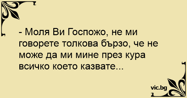 - Моля Ви Госпожо, не ми говорете толкова бързо, че не може да ми мине през kуpa всичко което казвате...