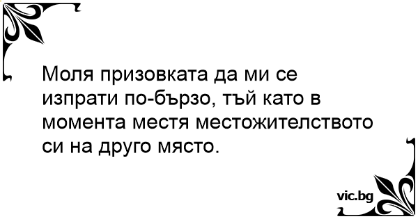 Моля призовката да ми се изпрати по-бързо, тъй като в момента местя местожителството си на друго място.