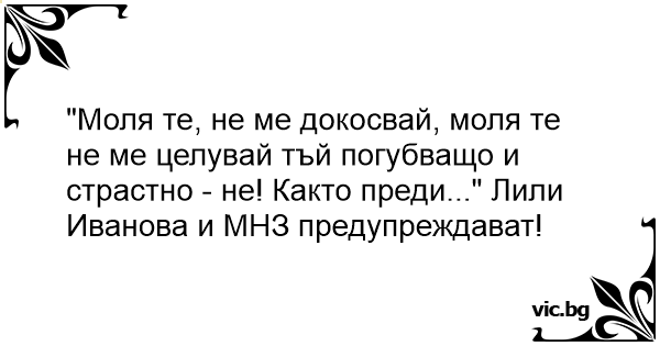 "Моля те, не ме докосвай, моля те не ме целувай тъй погубващо и страстно - не! Както преди..." Лили Иванова и МНЗ предупреждават!