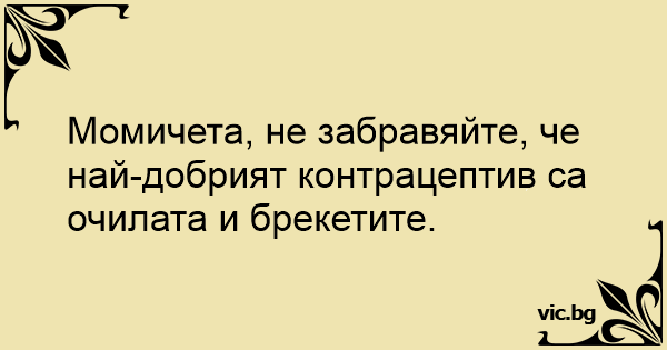 Момичета, не забравяйте, че най-добрият контрацептив са очилата и брекетите.