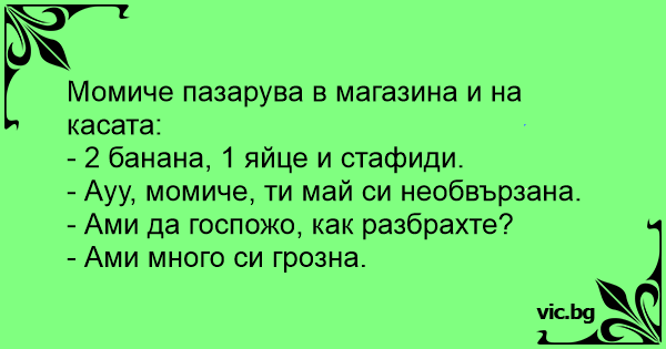 Жена пазарувала в супера. Докато оставяла нещата на лентата един пияница се приближил, огледал подробно покупките и и казал тихо: