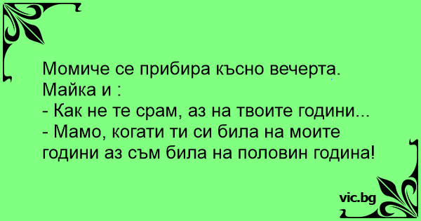 - Мамо, когати ти си била на моите години аз съм била на половин година!