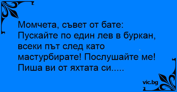 Пускайте по един лев в буркан, всеки път след като мастурбирате! Послушайте ме! Пиша ви от яхтата си.....
