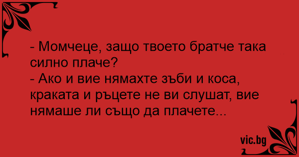 - Момчеце, защо твоето братче така силно плаче?