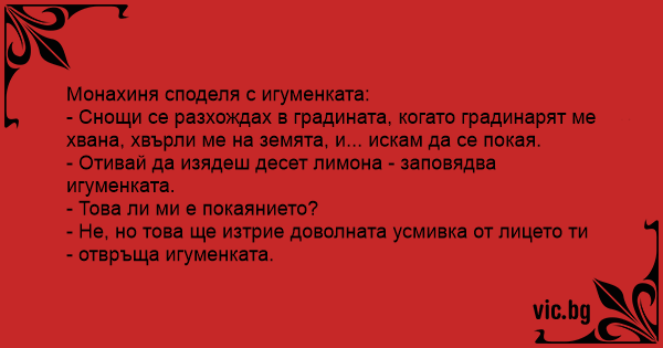 - Не, но това ще изтрие доволната усмивка от лицето ти - отвръща игуменката.