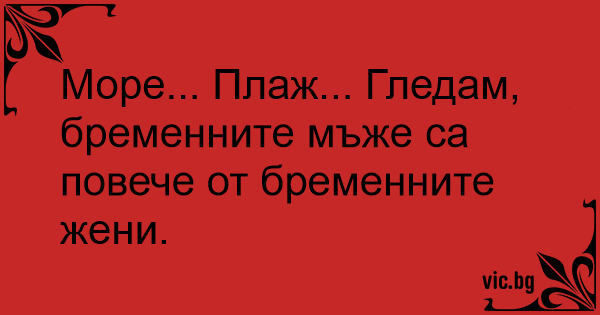 Море... Плаж... Гледам, бременните мъже са повече от бременните жени.