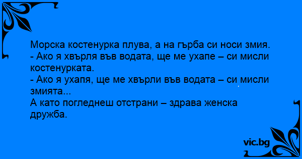 - Ако я ухапя, ще ме хвърли във водата – си мисли змията...