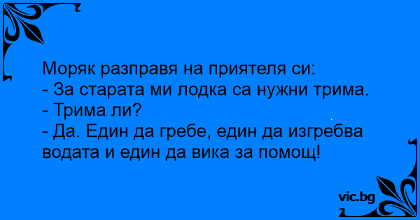 - Да. Един да гребе, един да изгребва водата и един да вика за помощ!