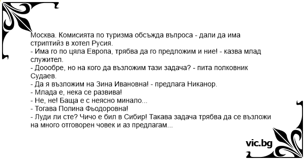 Москва. Комисията по туризма обсъжда въпроса - дали да има стриптийз в хотел Русия.