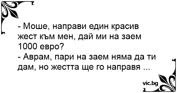 - Моше, направи един красив жест към мен, дай ми на заем 1000 евро?